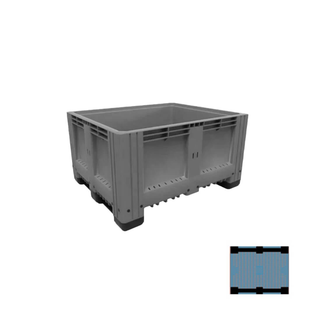 Descripción: Polietileno de alta densidad, resistencia máxima ante agentes acidos, basicos y alcalinos. U.V. estabilizado, 100% reciclable. Sin superficies cortantes, seguros al apilarse. Grado alimenticio aprobado por la FDA, el BIN cerrado. Dimensiones: Largo: 120 cm Ancho: 100 cm Alto: 58 cm 2 Traversas. Color: Gris.