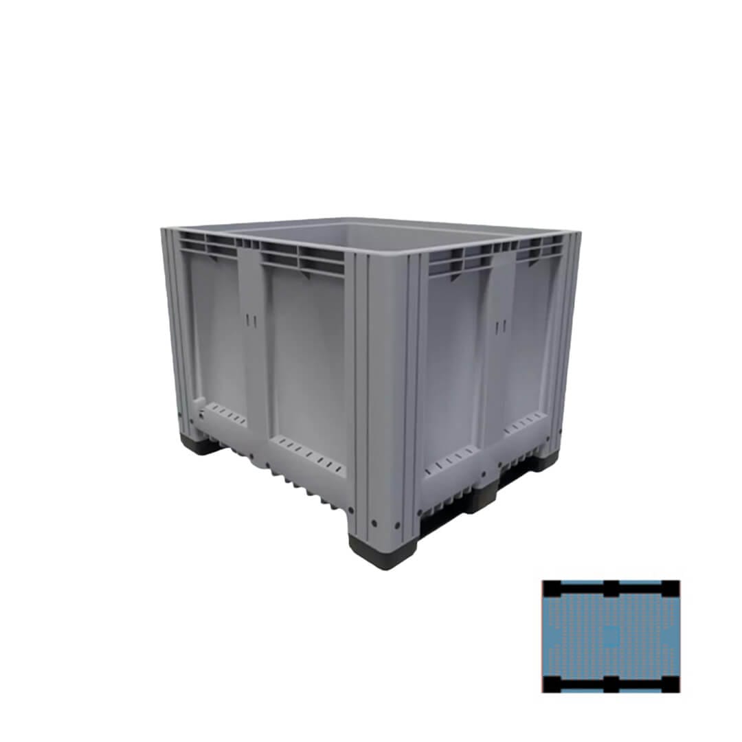 Descripción: Polietileno de alta densidad, resistencia máxima ante agentes acidos, basicos y alcalinos. U.V. estabilizado, 100% reciclable. Sin superficies cortantes, seguros al apilarse. Grado alimenticio aprobado por la FDA, el BIN cerrado. Dimensiones: Largo: 120 cm Ancho: 100 cm Alto: 82.5 cm 2 Traversas.Color: Gris.