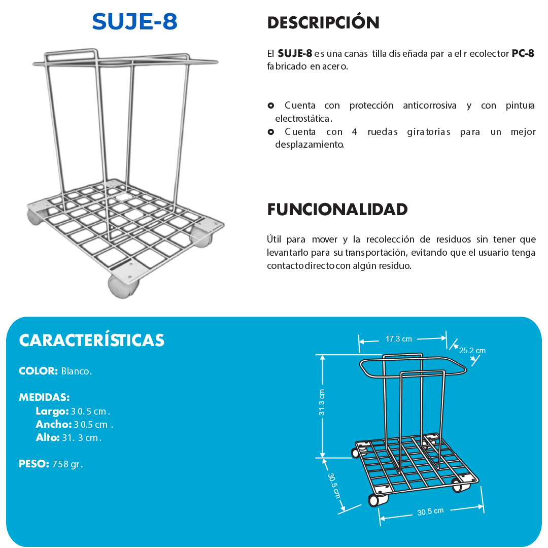 Descripción: Canastilla con ruedas para recolector PC-8.