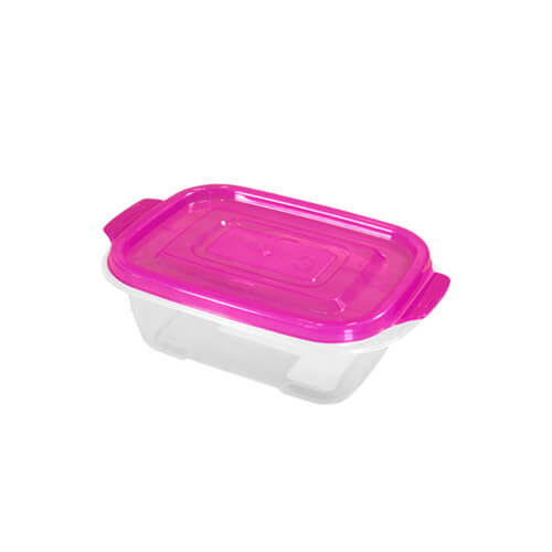 Descripción: Caja de plástico fabricada en polipropileno. Medidas: Largo: 18.2 cm. Ancho: 11.6 cm. Alto: 5.6 cm. Peso: .058 Kg. Capacidad de Carga: 550 ml. Colores: Naranja, Azul, Verde, Rojo, Rosa. Minimo de compra: 30 piezas