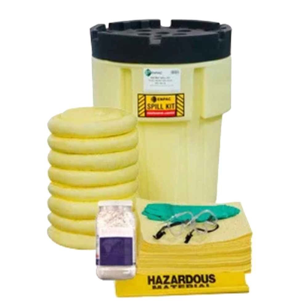Descripción: En un derrame el tiempo de reacción se convierte en su activo más valioso. Diseñado para derrames tipo HazMat para ser utilizados con químicos extremadamente peligrosos como ácidos y cáusticos. Aprobado por Normas: 29 CFR 1910.1450(e), 40 CFR 112.7, 40 CFR 122.26, 40 CFR 263.30(a), 40 CFR 263.31, EPA, SPCC y NPDES. Incluye 50 toallas absorbentes, 8 calcetines absorbentes, 4 bolsas para Residuos Peligrosos, 2 guantes de Nitrilo, 2 goggles de seguridad, 1 absorbente granular y 1 Tambor de Salvamento (Poly SpillPack). Medidas: 70.48 x 58 x 92.25 cm. Peso: 21 Kg. Capacidad de absorbentes: 132 Lts. Capacidad del contenedor: 378 Lts.