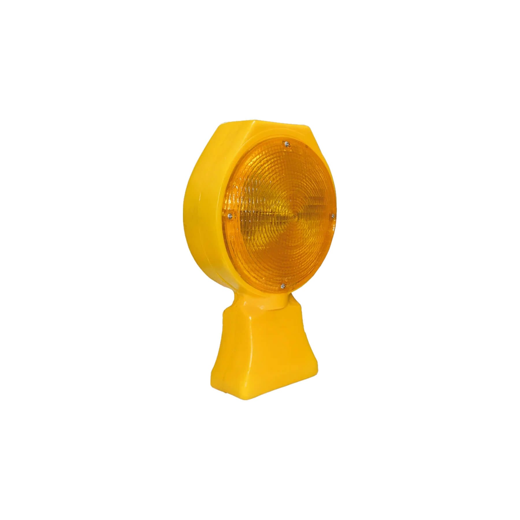 Descripción: Fabricada en polietileno color amarillo con mica frontal en metil metacrilato translúcido ámbar. Tecnología LED roja que emite luz parpadeante a 60 destellos por minuto. Encendido manual mediante interruptor y sistema inteligente ON/OFF. Lámpara de destello con alimentación electrónica mediante 2 baterías "D" alcalinas integradas en un paquete (Battery Pack), garantizando su efectividad durante un mínimo de 150 días constantes. 1 Cara.