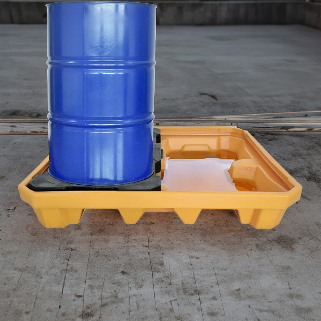 Descripción: La plataforma antiderrames Whale P4 está diseñada para la contención de derrames industriales, químicos y corrosivos de tambos o bidones. Fabricada en polietileno de media densidad 100% virgen. Habilitada para patín y montacargas por los 4 lados. Las rejillas cuentan con ranuras antideslizamientos.