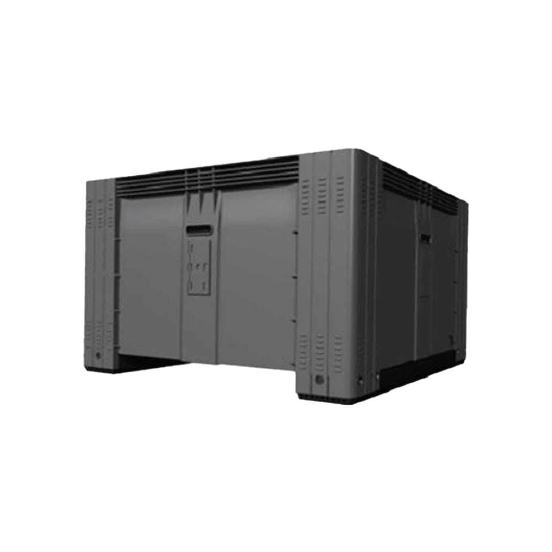Descripción: Contenedor fabricado en polietileno de alta densidad. Grado alimenticio aprobado por la FDA. Doble pared en el centro y esquinas posteriores que refuerzan el contenedor. Soporte de carga comprobada hasta 500 Kg. Apilable hasta 4000 Kg en almacenamiento en frío. Apilable hasta 3000 Kg. en temperatura de 35° C más de un mes, y hasta 2000 Kg. más de un año. Sin ranuras de ventilación. Capacidad: 780 Lts. Peso: 45 Kg. Profundidad: 645 mm Largo 1165 Ancho 1165 mm Alto: 780 mm Estiba Aprox: 3 Cont. Color: Gris. Excelentes para separar grandes cantidades de ropa en lavanderías, hoteles y hospitales.