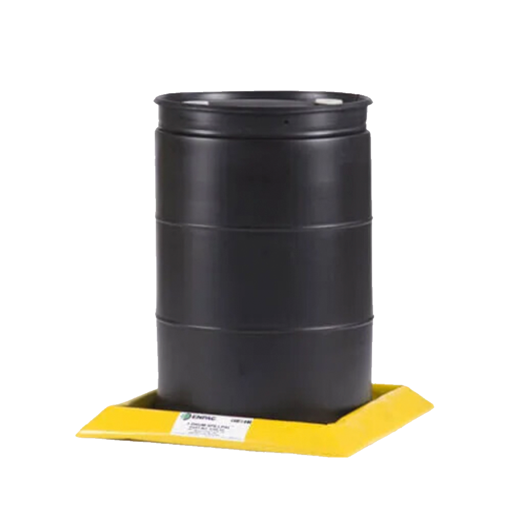 químicos y corrosivos. Compatible con ambos industriales o bidones. Fabricada con Berma 100% Grado Militar de Bajo Costo y Durabilidad. Fácil de almacenar sistema de contención flexible y portátil. Aprobada por Normas: EPA 40 CFR 264.175, SPCC, UFC Y NPDES. Medidas: 68 x 68 x 8 cm. Capacidad de Contención de Derrame: 22.5 Lts. Peso por Tarima: 5 Kg. Color: negro con amarillo.